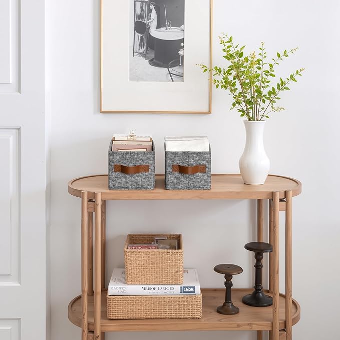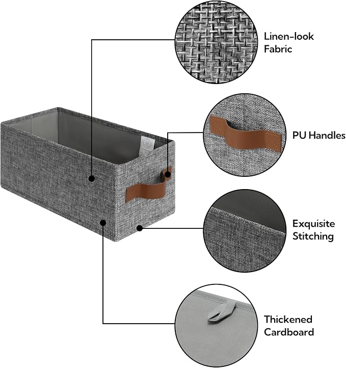 GRANNY SAYS Small Fabric Storage Bins with PU Handles, Storage Baskets for Shelves, Toilet Paper Storage, Narrow Baskets for Organizing DVD, Photos, Clothes, Diaper, Sock, Cd, 6-Pack, Gray