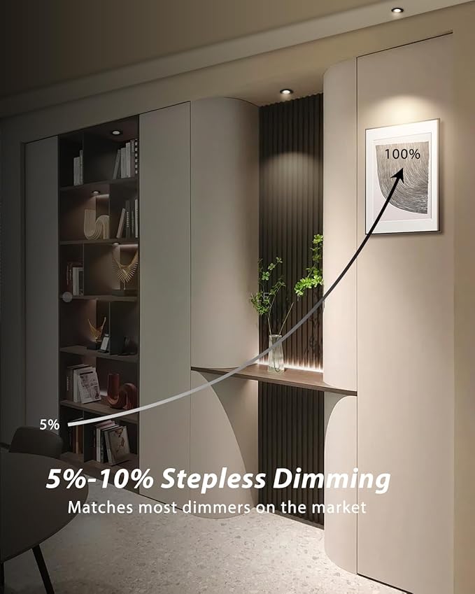 - ✅【Smooth Dimmable】Reset led lights for led 2 inch led recessed lights fixtures ceiling mount designed for 5%-100% smooth dimming. And the wafer lights is high quality driver without any unwanted flickering or humming noise. The 2 inch recessed lighting compatible with most dimmers and applicable to various scenarios such as kitchen, living room, workplace, common areas and soffits.