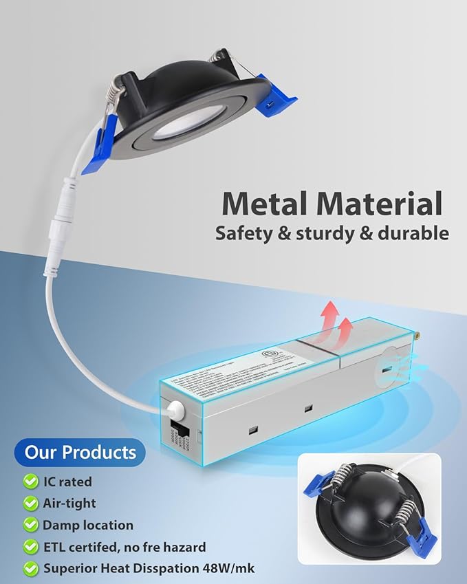 - ✅【IC rated】Led Recessed Lighting is IC rated, ETL & Energy Star certified and wire terminal is UL-certified, meaning the junction box is thermally protected. Our canless led recessed light 2 inch are guaranteed. If you have any quality problems or suggestions, please contact us and we will solve all problems in time!