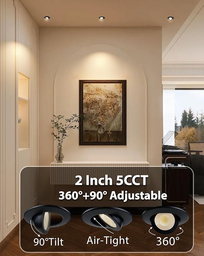 - ✅【360°+90° Adjustable】Adetu 2 inch gimbal led recessed lights can 360°Adjustable and up down 90°.