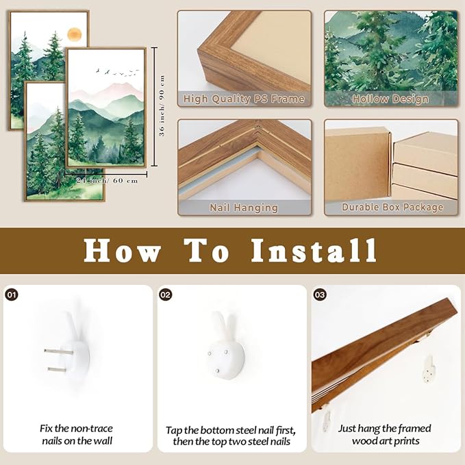 - 【Nature Woodland Painting&Effortless Installation】The misty mountain wall art comes with a complete hanging kit including hooks and non-trace nails, allowing quick setup in just 5 minutes.The pre-framed design eliminates the need for extra tools—simply measure your wall, hang the art, and enjoy instant beach-inspired decor.
