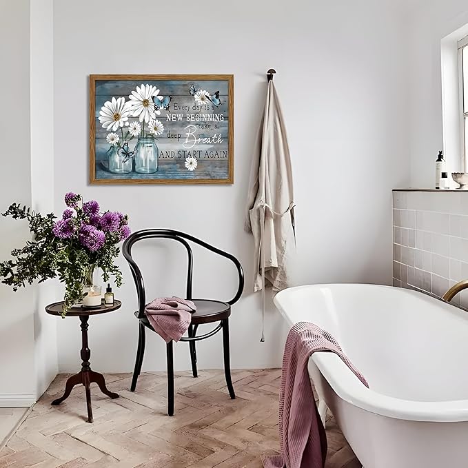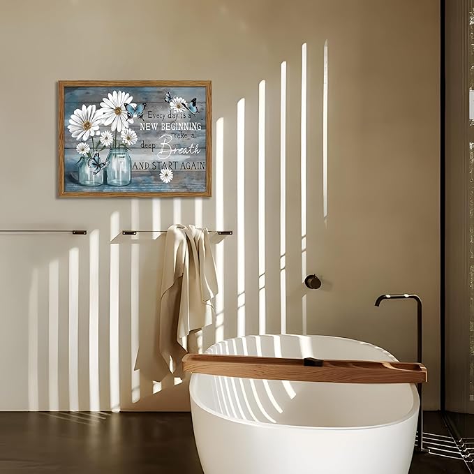 - 【Versatile Wall Art Decor】 – Sized at 16x24 inches, this framed canvas picture for wall decor brings a charming focal point to any space. The natural colors and rustic textures blend beautifully with country kitchen decor, daisy bathroom decor, or farmhouse-themed interiors, adding warmth and inspiration with a single elegant artwork.