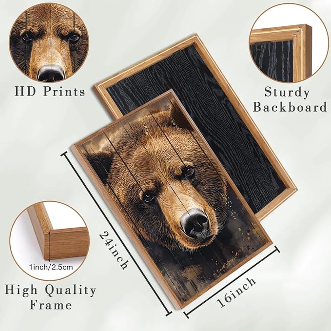- 【Easy to Hang】Hanging this brown bear forest wall decor is effortless.Simply choose your space (living room,bedroom,cabin,etc.), align the hooks with your wall nails or anchors, and secure them in place.In just minutes,you’ll transform empty walls into a rustic wildlife showcase,letting the bear and forest scene bring warmth and character to your home without any installation headaches.