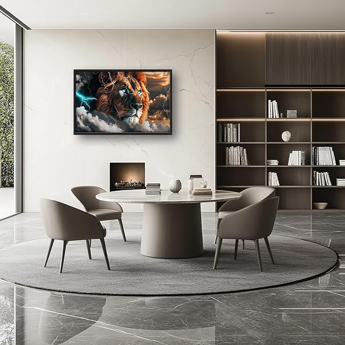 Abstract Lion Large Framed Wall Art Cool Lion Lightning Pictures Oversized Rustic Wild Animal Wall Decor Canvas Print Painting Aesthetic Modern Artwork for Living Room Bedroom Office Bathroom Home Decor 36L"x24W"