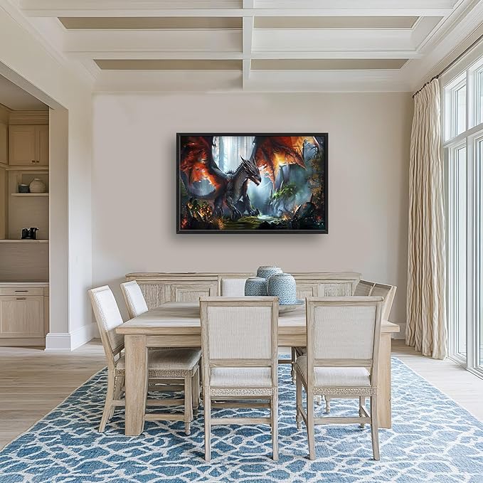 Dragon Large Framed Wall Art Western Fire Dragon Pictures Oversized Wall Decor Cool Animal Canvas Print Painting Aesthetic Modern Artwork for Living Room Bedroom Office Bathroom Home Decor 36L x24W