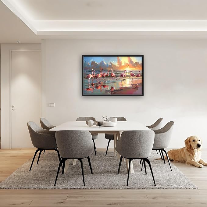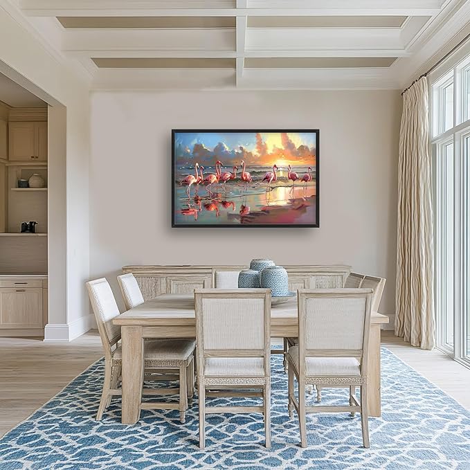 Flamingo Large Framed Wall Art Oversized Sea Coastal Beach Sunrise Pictures Wall Decor Seascape Canvas Print Painting Aesthetic Modern Artwork for Living Room Bedroom Office Bathroom Home Decor 36L"x24W"