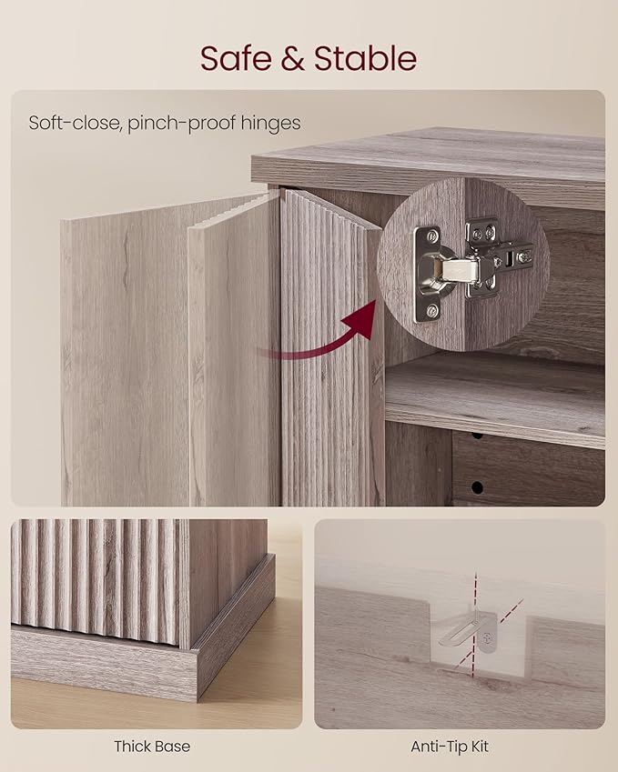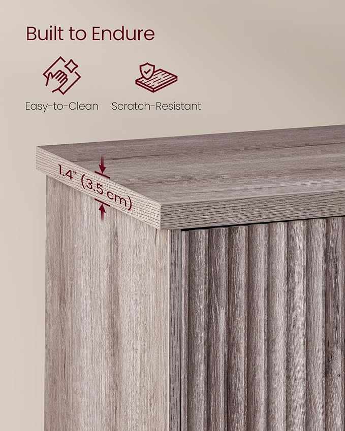 VASAGLE MAXE Collection - Transitional Buffet Cabinet, Console Cabinet, Sideboard with Adjustable Shelves, Fluted Doors, Buffet Table, Kitchen Pantry, Washed Gray UBBK382G01S