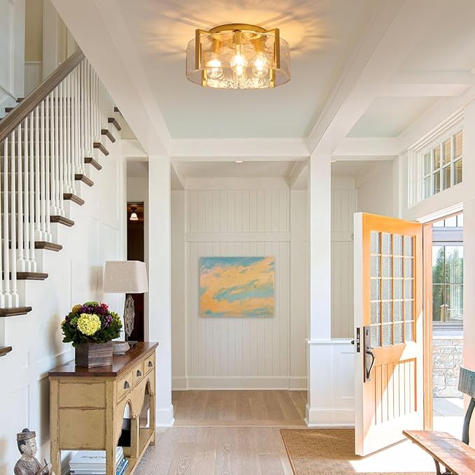 - Wide Applications - Add a wonderful touch of color to your home with the gold recessed kitchen lighting fixtures ceiling. The seeded glass shade will refract bright light and the ceiling pattern is a great addition to the aesthetic lighting. Bathroom ceiling light fixtures can also stand up to steam showers, making ceiling lights flush mount a rated light fixture for wet locations. Whether you need hallway light fixtures ceiling, bedroom lights for ceiling, bathroom light fixtures ceiling mount, hallway ceiling light, entryway light fixture, foyer lighting fixtures, kitchen ceiling light fixtures or laundry room light fixture, these semi-flush mount ceiling lights are the ideal choice.