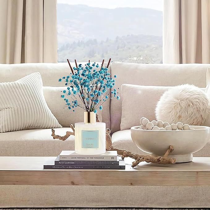COCORRÍNA Reed Diffuser - Ocean Mist 6.7 Fl.oz Reed Diffuser Set with Sticks & Preserved Baby's Breath, Reed Diffuser for Home Bathroom Shelf Decor