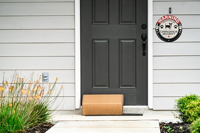 Chihuahua Security Warning Tin Sign Metal Round Sign for Wall Art Room Restaurant Bar Cafe Garage Decor Plaque Unique Gift for Dog Lovers 8x8 In