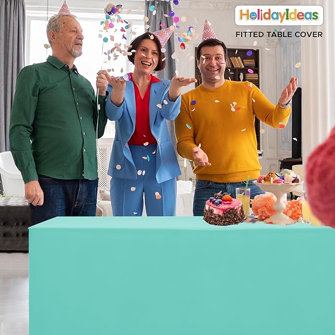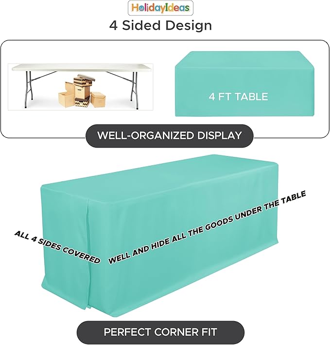 HolidayIdeas Fitted Tablecloths for 4 Foot Rectangle Table, Wrinkle Resistant Washable Table Cover 24x48 Inch for Vendor Booth Display, Banquet, Trade Show, Aqua, 4 Pcs