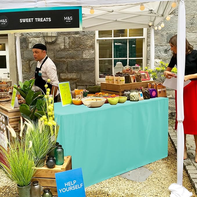 HolidayIdeas Open Back Fitted Tableclothss for 4 Foot Rectangle Table, Wrinkle Resistant Washable Table Covers 24x48 Inch for Craft Fairs, Banquets, Trade Show Display, Aqua,4 Pcs