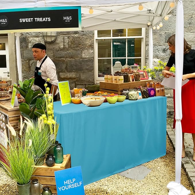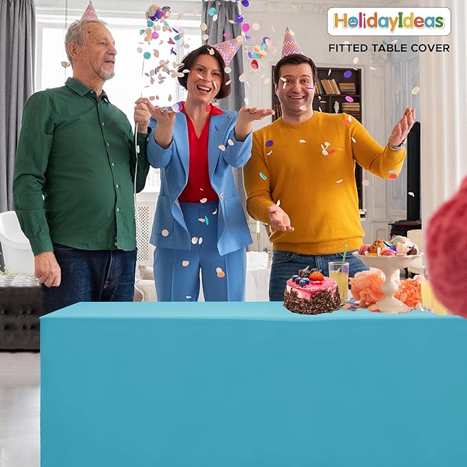 HolidayIdeas Open Back Fitted Tableclothss for 8 Foot Rectangle Table, Wrinkle Resistant Washable Table Covers 96x30 Inch for Craft Fairs, Banquets, Trade Show Display, Teal,4 Pcs