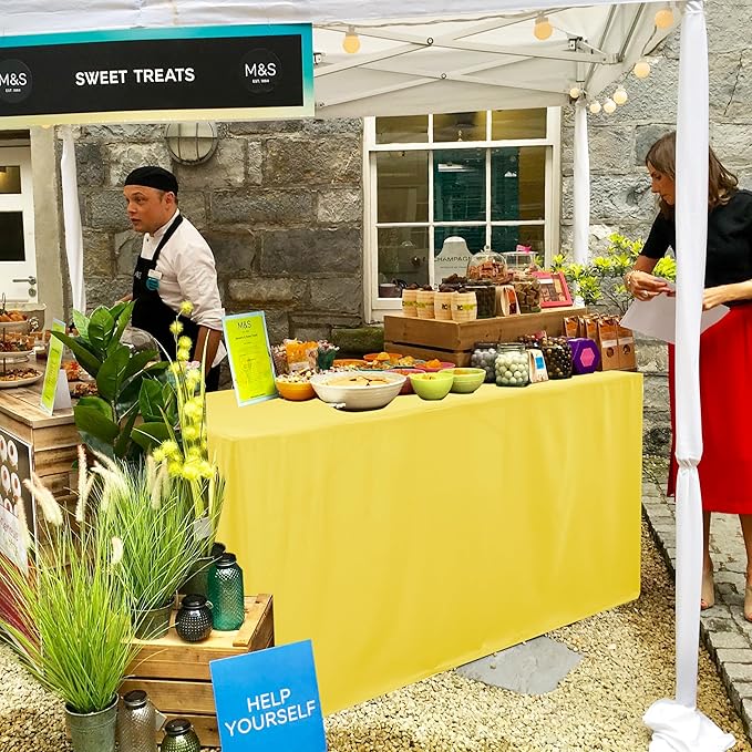 HolidayIdeas Open Back Fitted Tableclothss for 4 Foot Rectangle Table, Wrinkle Resistant Washable Table Covers 24x48 Inch for Craft Fairs, Banquets, Trade Show Display, Yellow,4 Pcs