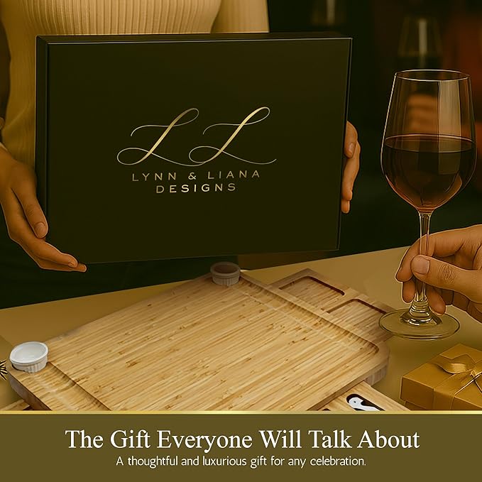Lynn & Liana Luxury Charcuterie Board with 4-Piece Cheese Knife Set, Corkscrew & Bottle Opener Gift Set, Expandable Bamboo Cheese Board, Wedding Gift, Housewarming, Birthday, Bridal Shower