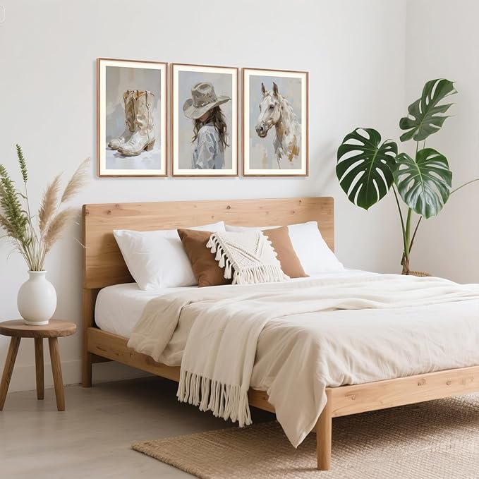 - QUALITY PRINTS, MADE TO LAST: The Cowgirl framed pictures wall decor is crafted with premium materials for long-lasting brilliance. With high-definition printing, fade-resistant ink, waterproof canvas, and PS frames with a wood texture, these prints are built to withstand time. They are carefully packaged for safe delivery.