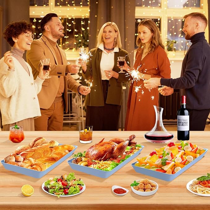- [Easy to Clean & Stackable]: Cleaning these trays for serving food is a breeze, thanks to its smooth surface. Just a few wipes with a damp cloth and it's good as new, ready for your next use. Plus, it is stackable for easy storage, saving you valuable cabinet space