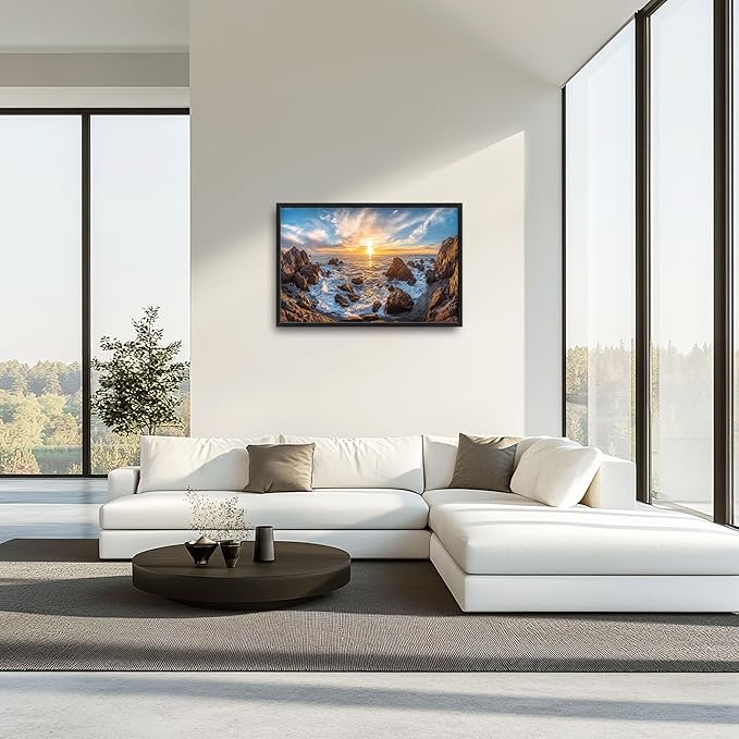 Coastal Large Wall Art for Living Room, Ocean Sunrise Oversized Wall Decor Pictures, Coast Seascape Framed Canvas Print Painting, Modern Artwork for Bedroom Office Home Decor 36"x24"