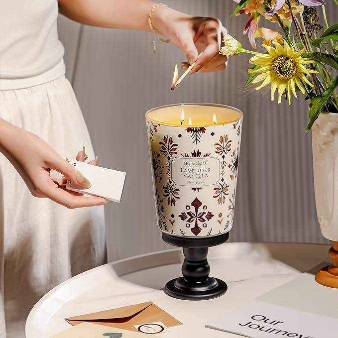 - 【Lavender Vanilla Fragrance for Relaxation】Scented Candles capture the essence of Lavender Vanilla with its soothing, floral top notes, a heart of creamy vanilla, and a soft, comforting base of warm musk. Perfect for cultivating a serene ambiance in living rooms, bedrooms, or bathrooms.