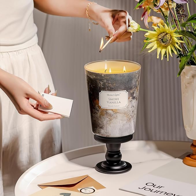 - 【Eco-Friendly and Clean Burning】Crafted with a natural soy wax blend, this triple-wick candle promotes a cleaner burn with reduced soot. The balanced wick design helps create an even melt pool, delivering consistent fragrance while complementing your decor.