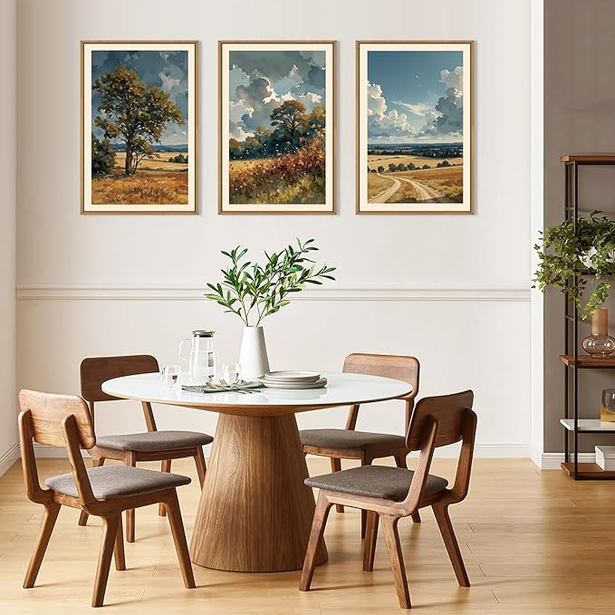 KAIRNE Framed Vintage Watercolor Landscape Wall Art Set of 3, Nature Country Scenery Art Prints, Rustic Farmhouse Wall Decor, Calming Pastoral Paintings for Living Room Bedroom Office, 16x24 Inch