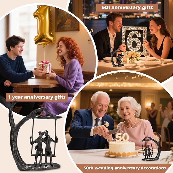 - Perfect Wedding & Anniversary Gift: Celebrate eternal love with this romantic swing couple statue, an ideal gift for weddings, anniversaries, and birthdays. This handcrafted iron sculpture makes a heartfelt gift for couples, wife, husband, girlfriend, or boyfriend—symbolizing love, unity, and lifelong commitment.