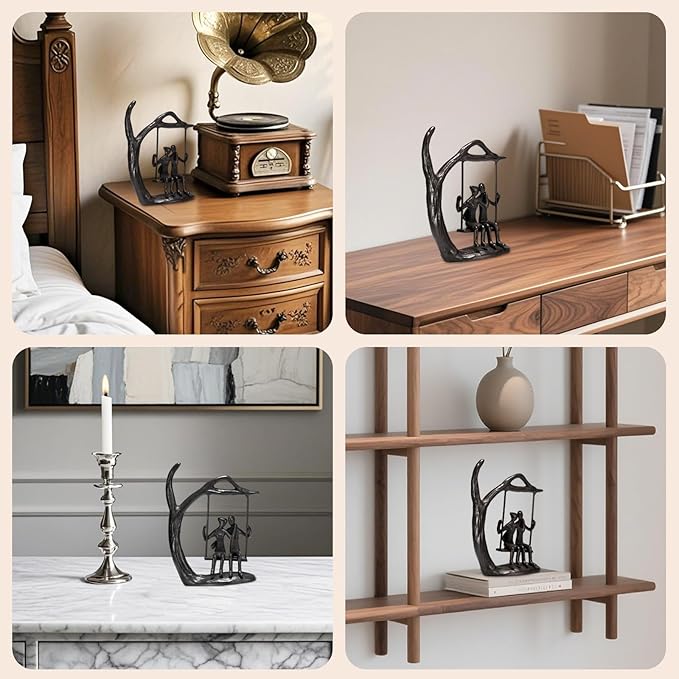 - Handcrafted & Detailed Romantic Decor: Each swing couple statue is carefully crafted with intricate details, showcasing a couple in a loving embrace. The classic black finish blends with any décor, making it a timeless piece for shelves, desks, or bedside tables. A unique gift for her or him that sparks joy every day.