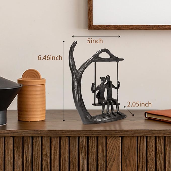 - Unique Swing Couple Iron Sculpture: This black metal swing couple statue beautifully captures the joy of love with its elegant, motion-inspired design. Made from durable cast iron, the romantic figurine (4.92" x 2.13" x 6.54") adds charm to any home. A sentimental 6th (iron) or 11th (steel) anniversary gift, perfect for Valentine’s Day, date nights, or milestone celebrations.