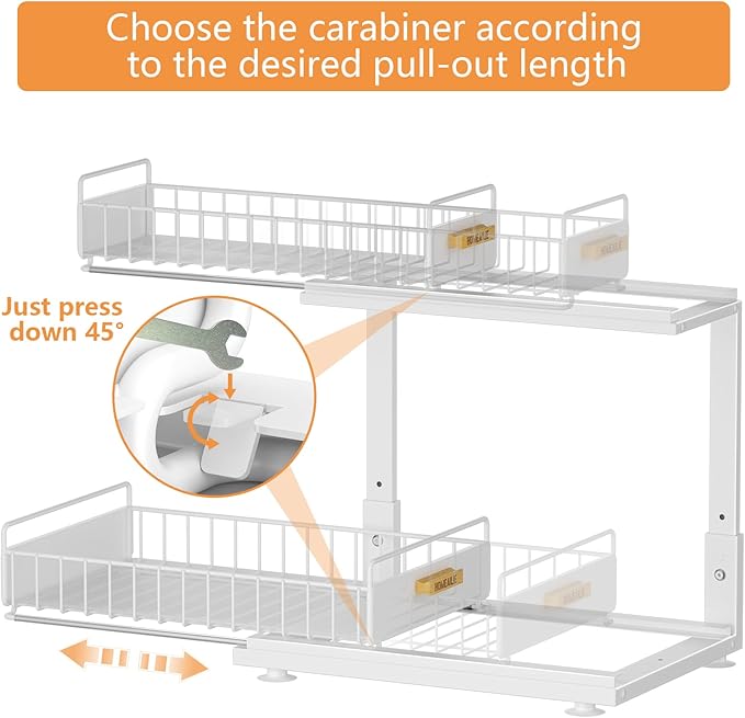 - Double Pull-Out: Under the sink organizer Smooth quiet sliding tiers maximize vertical space, providing double the storage capacity under the sink while still allowing ready access to items