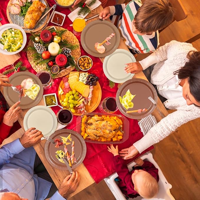 - 180 Pcs Plates and Napkins Set: This set includes 60 dinner plates (9.1"), 60 dessert plates (7.1"), and 60 napkins, perfect for serving up to 60 guests. From casual dinners to large celebrations, this all-in-one solution ensures a stylish, hassle-free dining experience every time