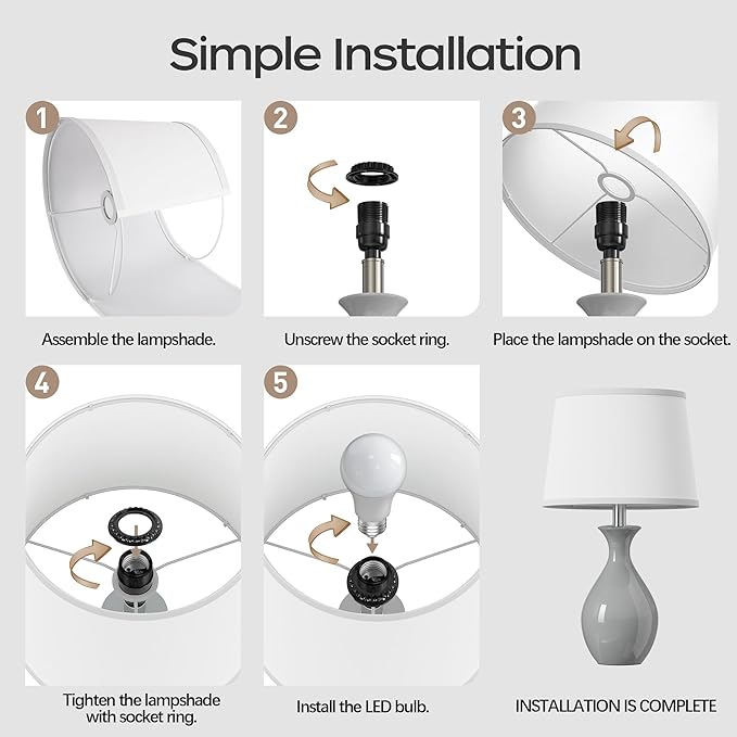 - Tool-Free Assembly: please note that the lampshade in your package has been carefully rolled into a cylindrical shape for compact shipping. The product features tool-free assembly and can be installed within minutes using our included step-by-step guide. Should you encounter any difficulties during installation, please don't hesitate to contact our support team for immediate assistance