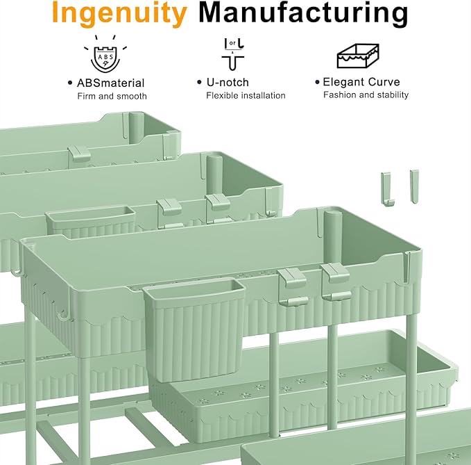- [Super Easy Setup]: No tools? No problem. These undersink organizers are a breeze to put together—just follow the step-by-step guide or check out the quick how-to video. You’ll have everything set up in about 3 minutes. Seriously, it’s that easy