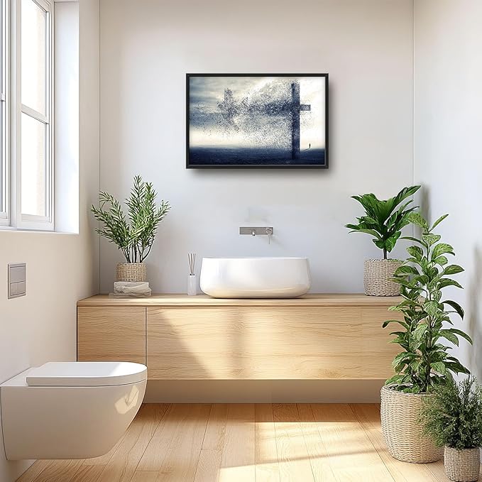 Flintis Large Cross Dove Wall Art Christian Cross Pictures Wall Decor Abstract Religion Canvas Painting Print Artwork Decoration Framed for Living Room Bathroom Master Bedroom Office 36L x 24W