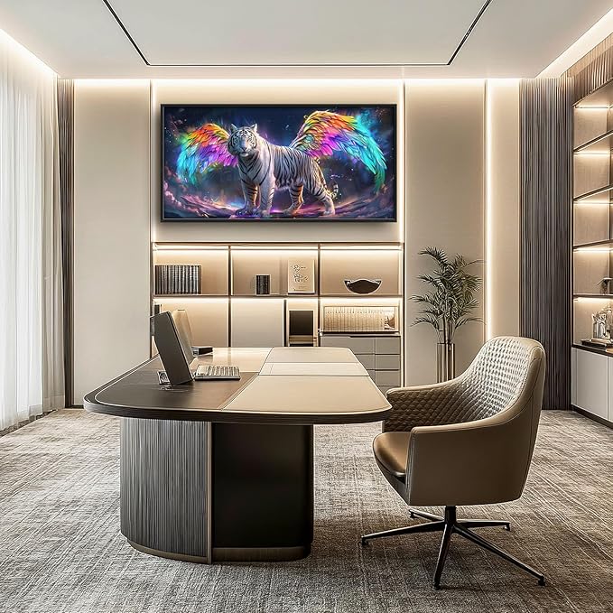 Flintis Large Tiger Wall Art White Tiger Angel Wings Pictures Wall Decor Abstract Animal Canvas Painting Print Artwork Decoration Framed for Living Room Bathroom Master Bedroom Office 60L x 30W