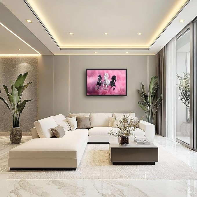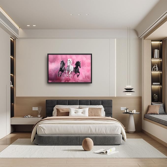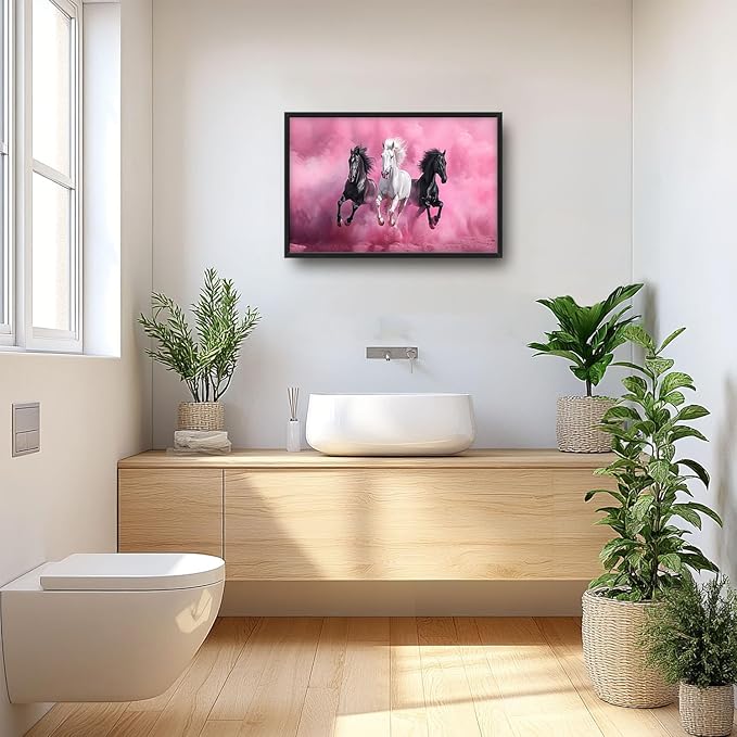 Flintis Large Horse Wall Art Black and White Horses Pictures Wall Decor Abstract Animal Canvas Painting Print Artworks Decorations Framed for Living Room Bathroom Master Bedroom Office 36L x 24W