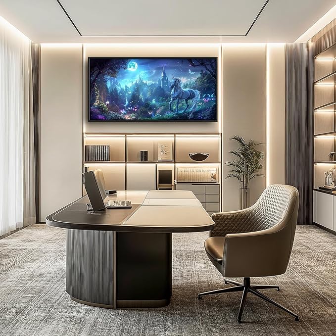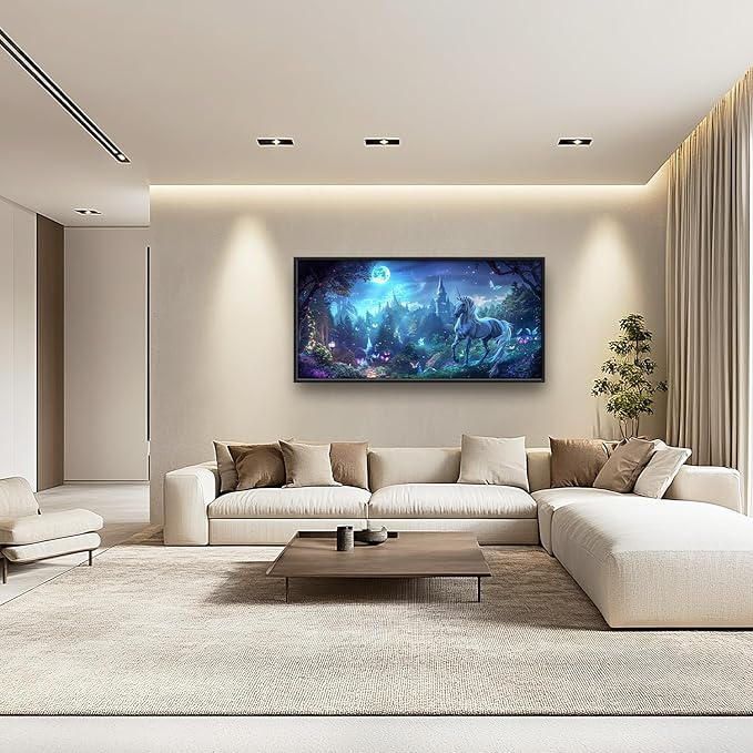 Flintis Large Unicorn Wall Art Unicorn Castle Moon Pictures Wall Decor Abstract Animal Canvas Painting Print Artwork Decoration Framed for Living Room Bathroom Master Bedroom Office 60L x 30W