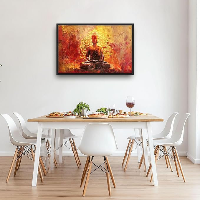 Flintis Large Buddha Wall Art Zen Buddha Statue Pictures Wall Decor Abstract Religion Canvas Painting Print Artwork Decoration Framed for Living Room Bathroom Master Bedroom Office 36L x 24W