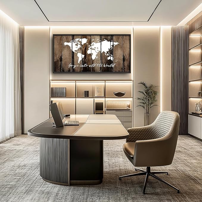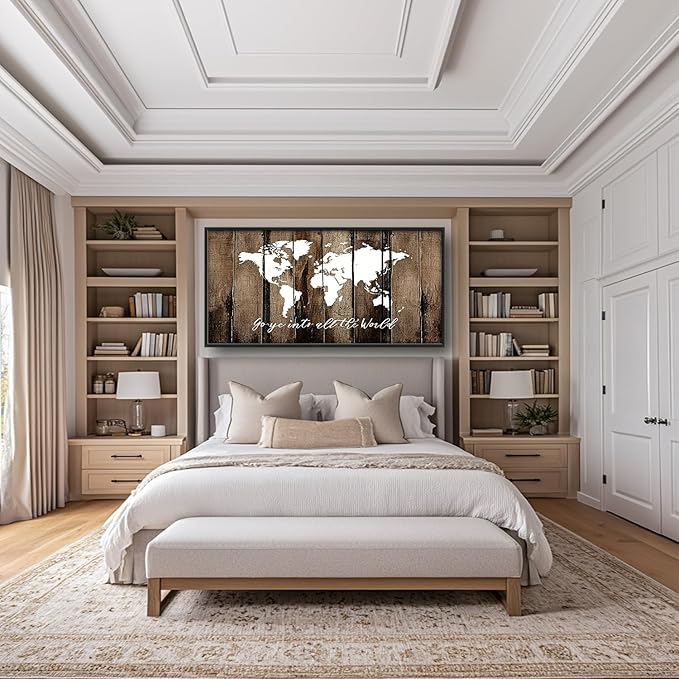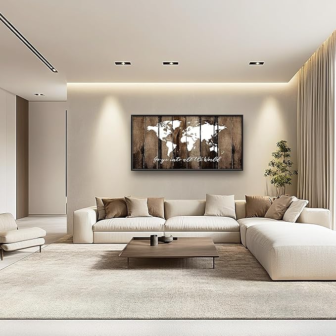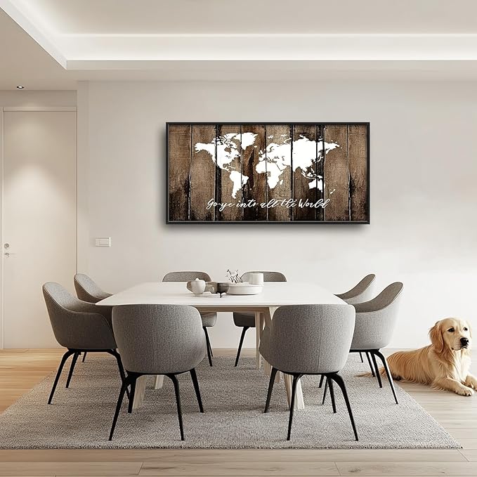 Flintis Large World Map Wall Art Go Ye Into All The World Pictures Wall Decor Abstract Canvas Painting Print Artwork Decoration Framed for Living Room Bathroom Master Bedroom Office 60L x 30W