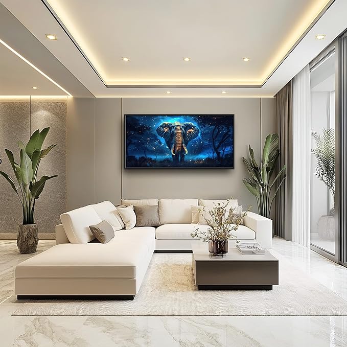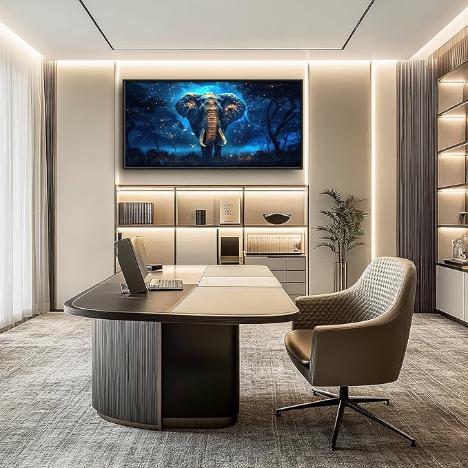 Flintis Large Elephant Wall Art Elephant Moon Wall Decor Abstract Animal Canvas Painting Print Artwork Decoration Framed for Living Room Bathroom Master Bedroom Office Dining Room 60L x 30W