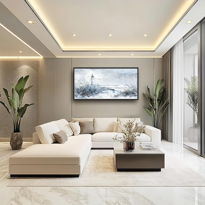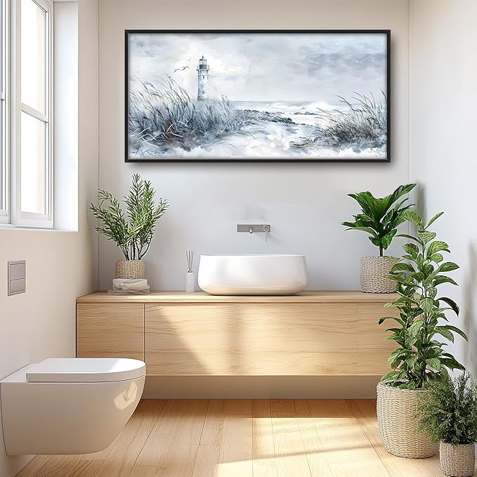 Flintis Large Lighthouse Wall Art Beach Lighthouse Pictures Wall Decor Abstract Nautical Canvas Painting Print Artwork Decoration Framed for Living Room Bathroom Master Bedroom Office 60L x 30W