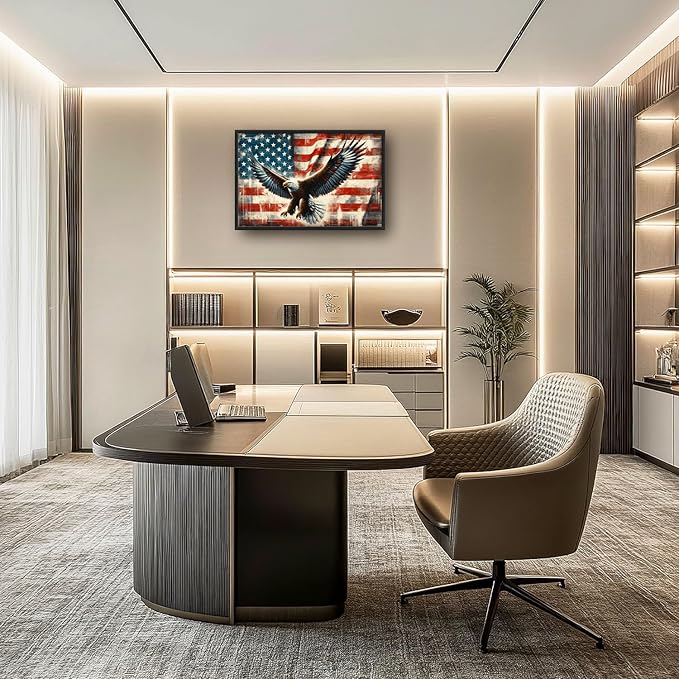 Flintis Large Bald Eagle Wall Art Eagle American flag Pictures Wall Decor Abstract Animal Canvas Painting Print Artwork Decoration Framed for Living Room Bathroom Master Bedroom Office 36L x 24W