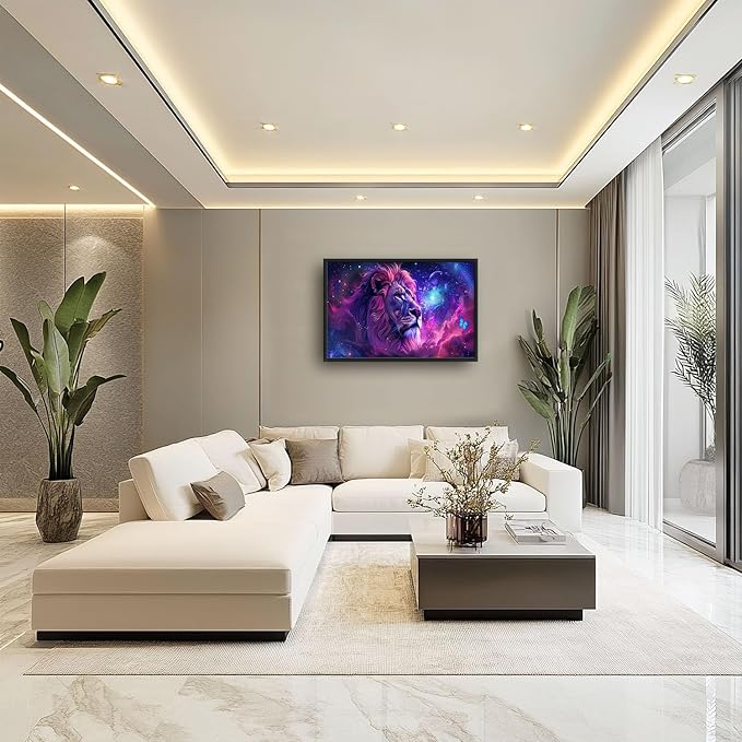 Flintis Large Lion Wall Art Colorful Lion Pictures Wall Decor Abstract Animal Canvas Painting Print Artwork Decoration Framed for Living Room Bathroom Master Bedroom Office Dining Room 36L x 24W