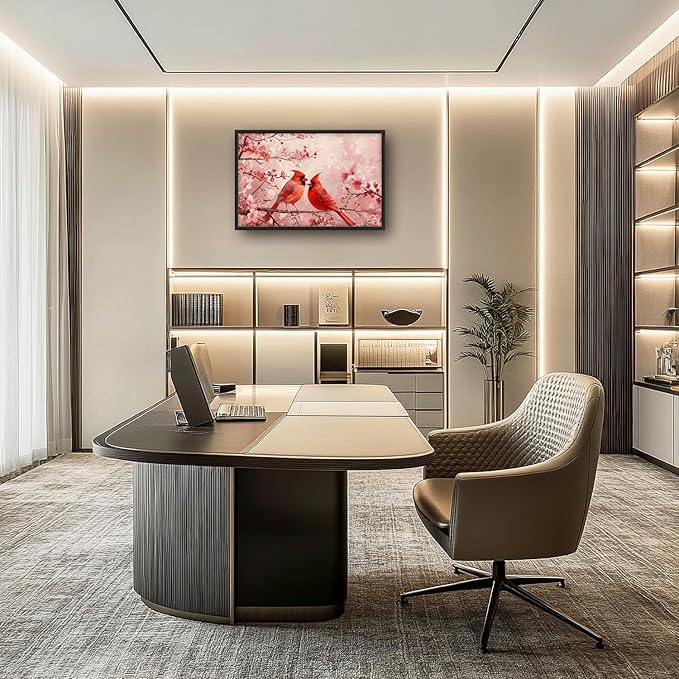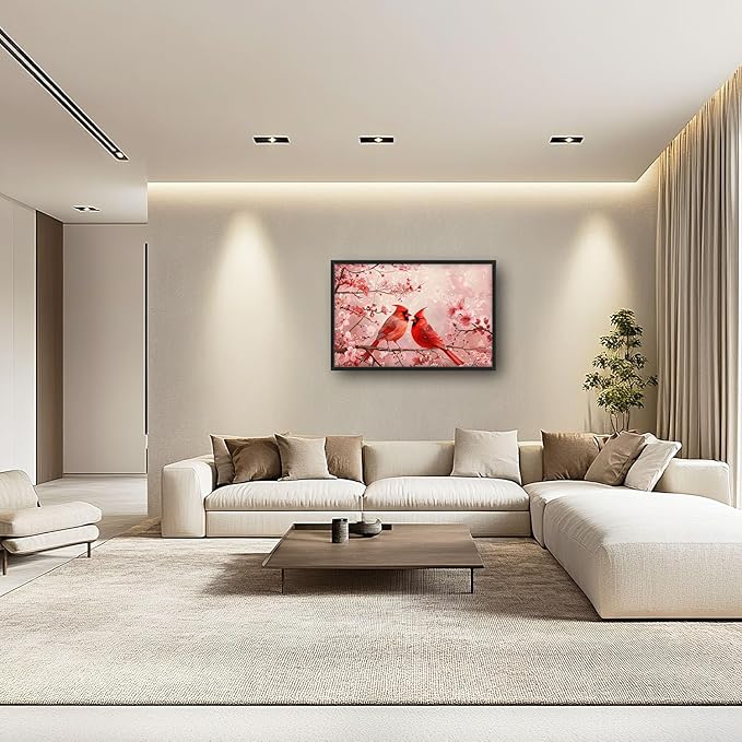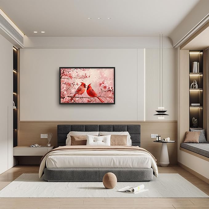 Flintis Large Cardinals Wall Art Red Cardinals Pictures Wall Decor Abstract Animal Canvas Painting Print Artwork Decoration Framed for Living Room Bathroom Master Bedroom Office Dining 36L x 24W