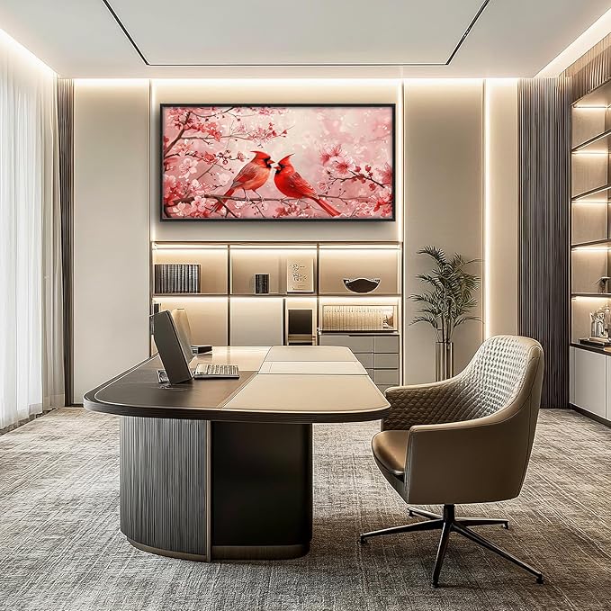Flintis Large Cardinals Wall Art Red Cardinals Pictures Wall Decor Abstract Animal Canvas Painting Print Artwork Decoration Framed for Living Room Bathroom Master Bedroom Office Dining 60L x 30W