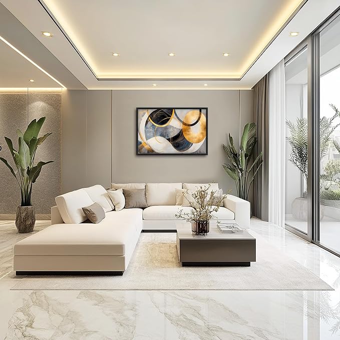 Large Abstract Wall Art for Living Room, Oversized Abstract Circle Wall Decor, Black and Golden Abstract Canvas Painting Modern Artwork Home Decoration for Living Room Bedroom Office Framed 36"x24"