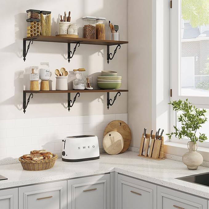 - Suitable for All Occasions: The floating shelves are designed for storage and decoration, wall-mounted shelves are ideal accent for any room - from keeping seasoning, plates, spices bottles in a kitchen area to holding books, collection, globe, photo frame, small plants and trophies in a living room, office, study or organizing hand towels and toiletries in a bathroom