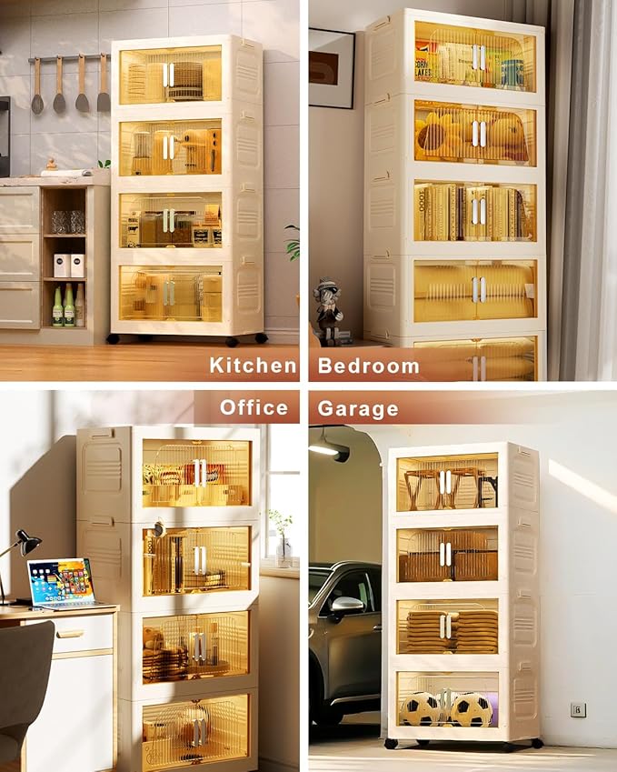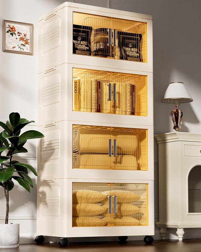 - 【Versatile Stackable Storage Bins】 Each storage bins with lids can hold up to 76 QT, and each stackable storage box measures 15.35 * 23.62 * 38.97 inches. These storage containers can be used to store personal items such as clothing, office supplies, art supplies, toys, snacks, etc. Use plastic storage cabinets to keep your space tidy and orderly