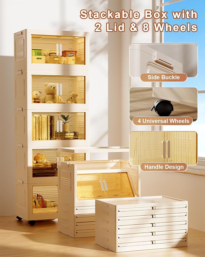 - 【Easy to Install & Stack】 The storage bins with wheels design is convenient, and the covered storage box can be assembled in just three simple steps. When not in use, our storage containers can be quickly disassembled for easy storage. And this collapsible storage bins is a great space saver and fits neatly under a sofa, bed or other tight spaces