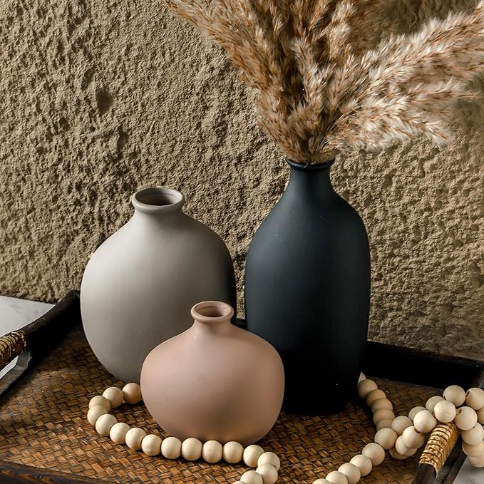 - Farmhouse Neutral Home Decor – Add a warm, curated touch to any space with this versatile ceramic vase set. Whether displayed together as a centerpiece or styled individually around your home, each vase brings its own charm. Perfect for the living room, bedroom, kitchen, bathroom, or office, these rustic boho vases complement neutral decor beautifully—on shelves, tables, sideboards, or nightstands.