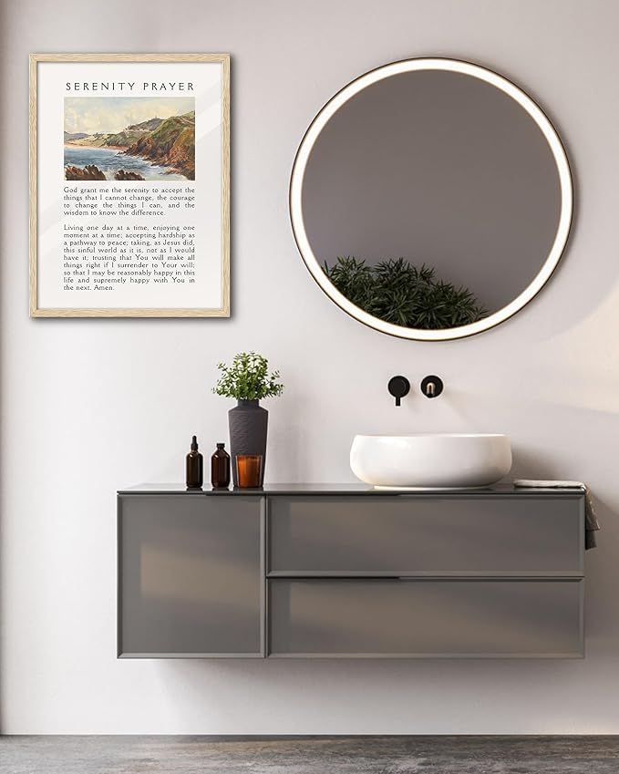 EcoHest OAK Wood Jesus Framed Wall Art, 12x16in Serenity Prayer Bible Verse Christian Wall Art, Modern Bedroom Religious Decor For Living Room Bathroom Christian Merch Gift 1Pack